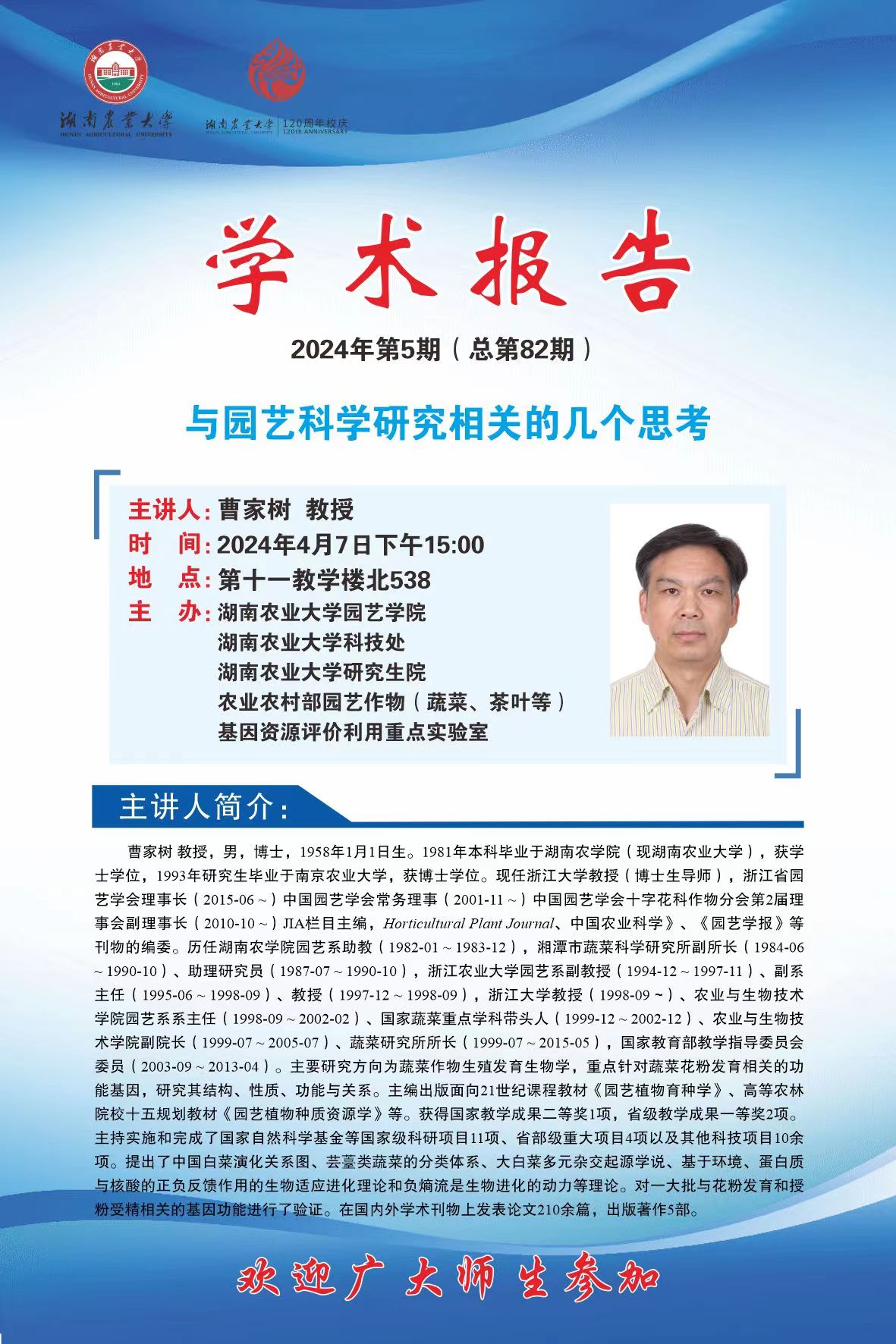 园艺讲坛第八十二期-名师讲坛:与园艺科学研究相关的几个思考