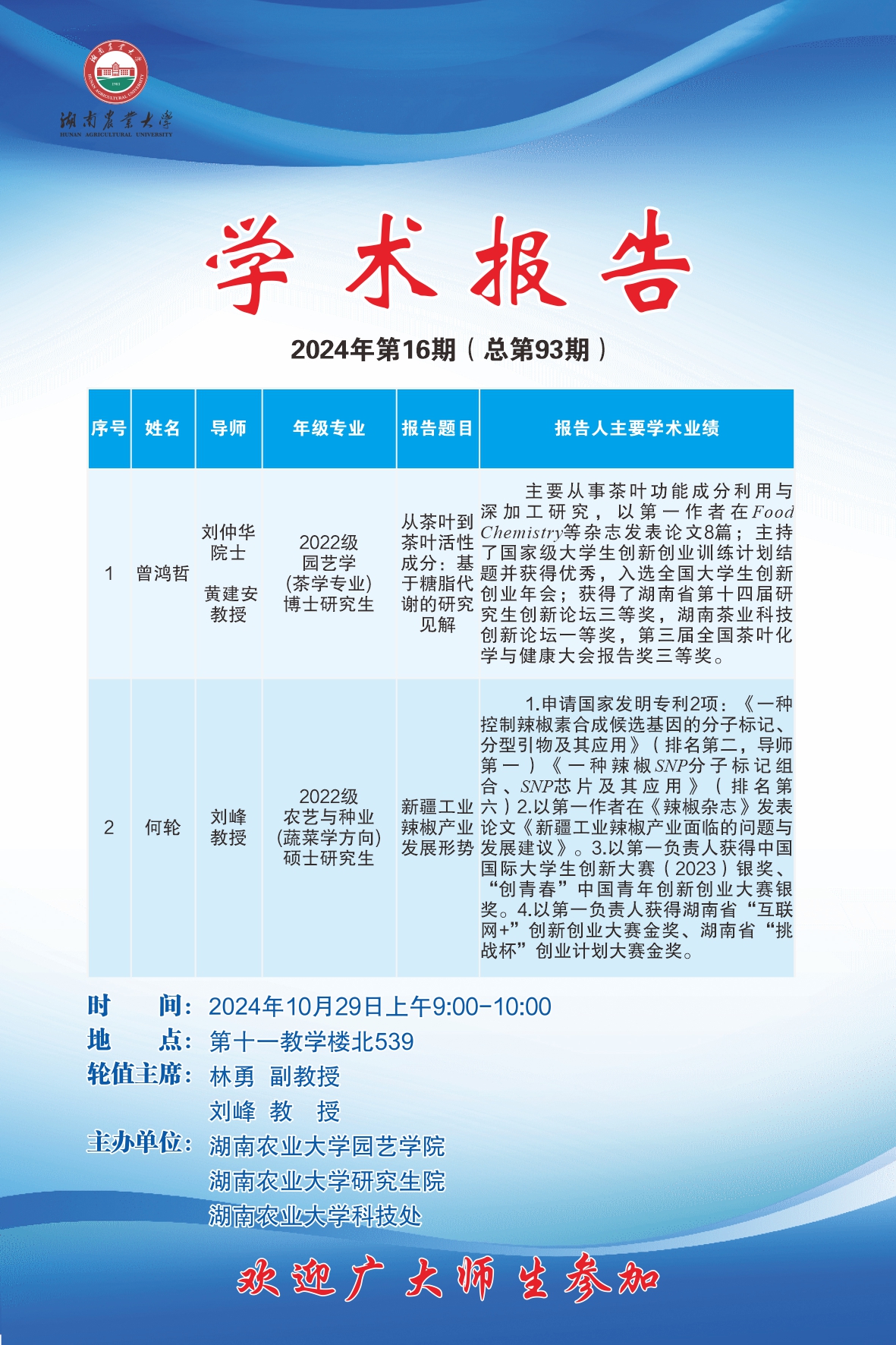 园艺讲坛第九十三期-博学讲坛:从茶叶到茶叶活性成分:基于糖脂代谢的研究见解;新疆工业辣椒产业发展形势