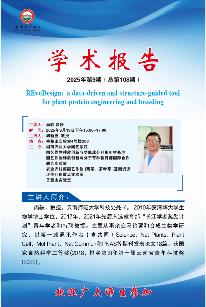 园艺讲坛第108期-名师讲坛:REvoDesign: a data-driven and structure-guided tool for plant protein engineering and breeding