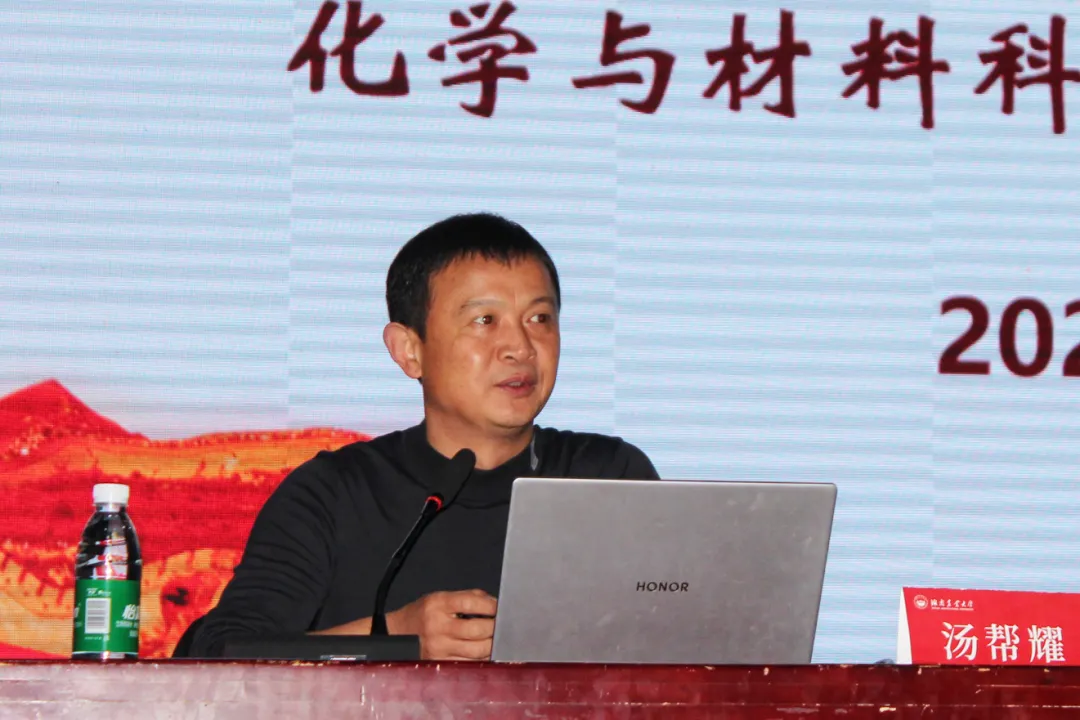 化学与材料科学学院党委书记汤帮耀以《用青春拥抱时代,用生命点燃未来》为题,讲述了中国共产主义青年团的奋斗历程,勉励大家继承优良传统,赓续红色血脉。