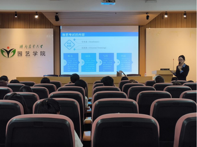 本网讯(suncitygroup太阳集团官方网站 仇宇萱 欧汉琼)为进一步深化学院学风建设内涵,精准对接学生学业发展的国际化需求,太阳集团于2024年9月27日中午,在11教北539举办雅思培训项目公益讲座。湘农国际教育中心邓林竹老师主讲,五十余名师生参会。