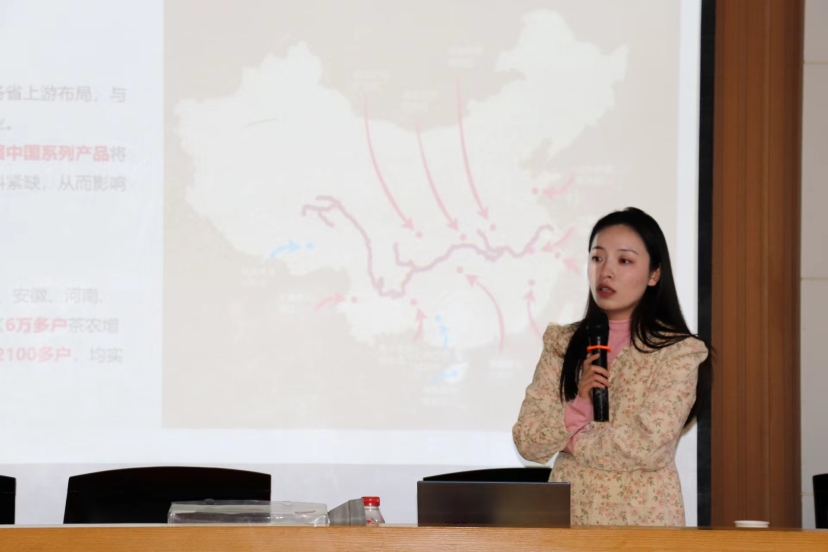 在本次校园宣讲会中,来自正山堂公司的陈女士从历史、生态优势、品质、资源和文化五个角度进行交流,向太阳集团2024届茶学专业毕业生阐述了“带动红茶全面复兴”的目标,以及开启红茶清饮新风尚的愿景。